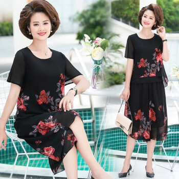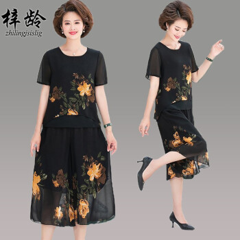 梓龄 中老年女装夏装雪纺两件套装女新款妈妈装洋气T恤中年夏季宽松小衫上衣裙裤 黄花 请拍对应尺码 |