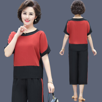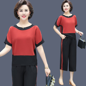 涂蝶幽 妈妈夏装运动服套装两件套新款洋气减龄中老年女装人短袖上衣服女 红色 2XL (105-115斤) |