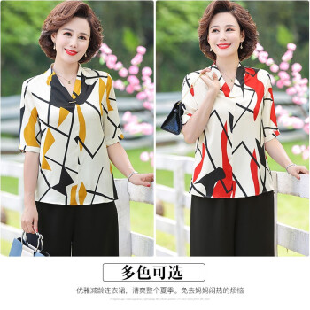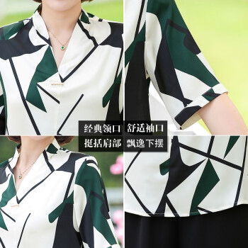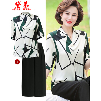 黛苇中老年女装妈妈装夏装洋气两件套装新款中年50岁短袖上衣中老年女雪纺小衫休闲大码女装 绿色(阔腿裤) XL(90-110斤) |
