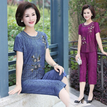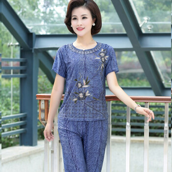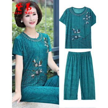 黛苇中老年女装妈妈装套装夏装短袖冰丝宽松中年妇女两件套休闲运动套装女新款奶奶装大码女装跑步服 孔雀蓝 XL(90-120斤) |