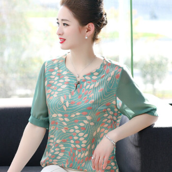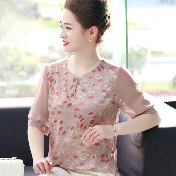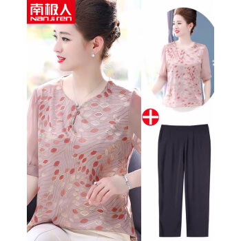 南极人 妈妈装套装夏季新款洋气雪纺小衫50岁中老年短袖女士上衣大码两件套 N3-NRA76-9246-套装皮粉 XL 建议95-110斤穿 |