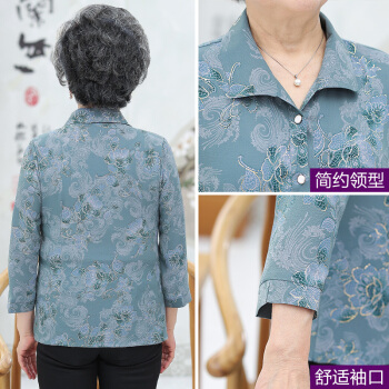 孝珍中老年女装夏装衬衫套装女60岁70妈妈装衬衣两件套七分袖80老年人女装 绿色+裤子 2XL(建议115-125斤) |