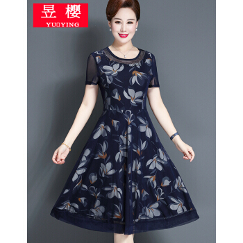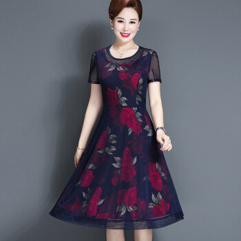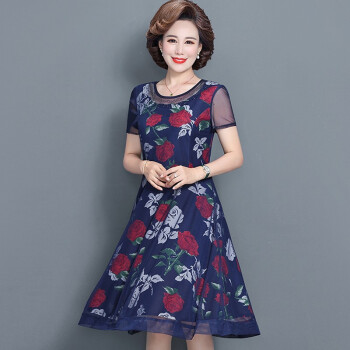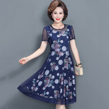昱樱中老年女装连衣裙新款夏装碎花裙4050岁妇女阔太太过膝大码宽松中年女装薄款高贵妈妈装裙子 1号色 此码勿拍.请拍自身对应码数 |