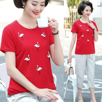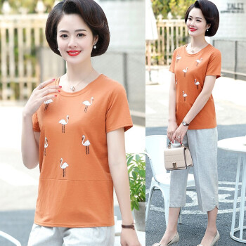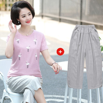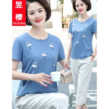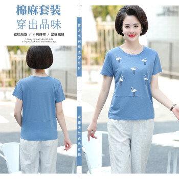 昱樱中老年女装短袖t恤套装夏装新款4050岁中年女装上衣裤子妇女休闲宽松大码衣服妈妈两件套 蓝色+棉麻裤 此码勿拍.请拍自身对应码数 |