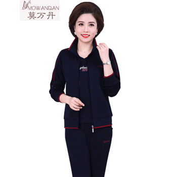 莫万丹高端新品中老年女装妈妈装休闲运动套装女秋装新款中年女装春秋运动服三件套YWD2001 ASTS宝蓝 3XL【建议130-140斤】 |