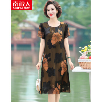 南极人 中老年女装夏季新款大码宽松短袖雪纺妈妈装中年连衣裙时尚洋气碎花裙子 N3-NRB03-3008-黄花 3XL【建议120-135斤】 |