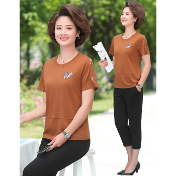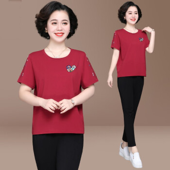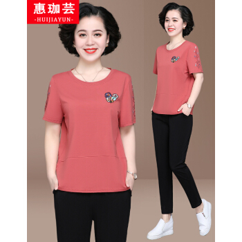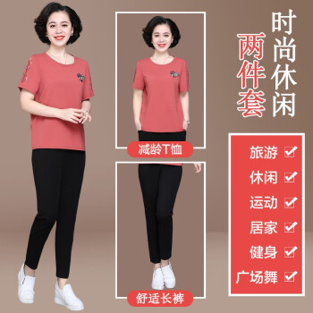 惠珈芸中老年女装夏装两件套短袖T恤上衣洋气新款简约时尚减龄阔太太运动装女大码宽松妈妈装套装 皮红色(7分裤) 此码勿拍.请拍自身对应码数 |