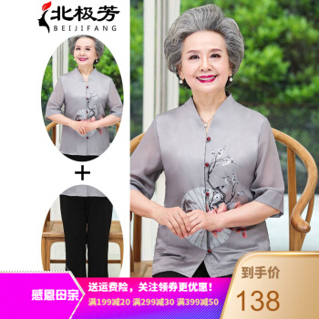 北极芳 中老年女装奶奶装夏装套装印花妈妈装衬衫老年人女士中长袖中国风衬衣 093-2024 灰色套装 2XL【105-120斤】 |
