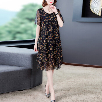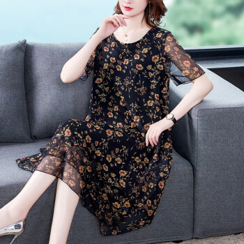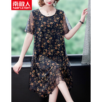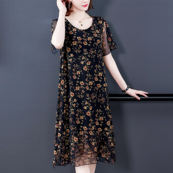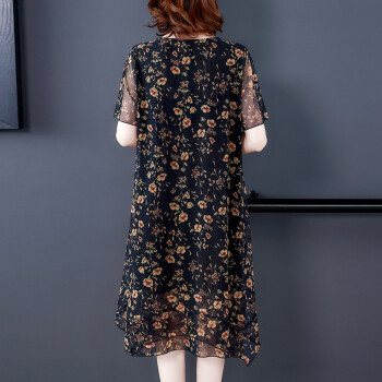 南极人 中年连衣裙夏季新款大码中老年女装妈妈装贵夫人高端气质遮肚中长款雪纺碎花裙子 N3-BH358-16025-黑色 3XL |