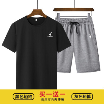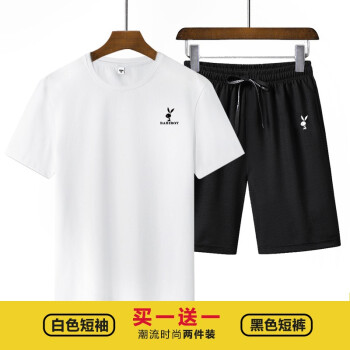 BABIBOY 夏季新款男士运动套装短裤男纯棉T恤男纯色圆领T恤男 白色T恤+黑裤 XL |