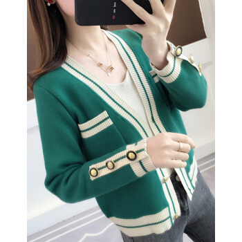 婪澈针织衫女秋冬女装新款韩版修身毛衣女显瘦洋气百搭开衫上衣女长袖 绿色 L |