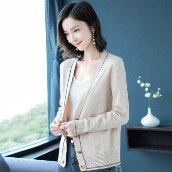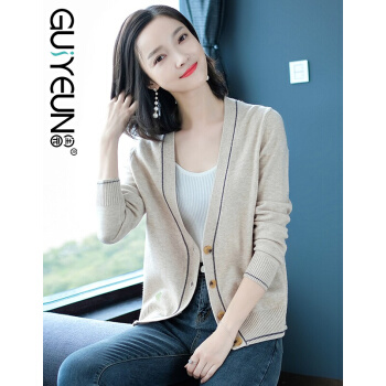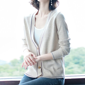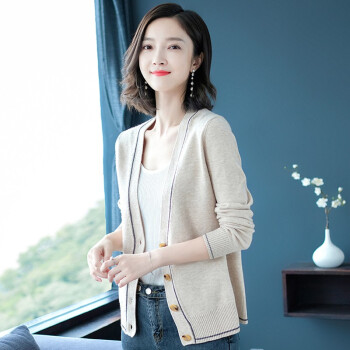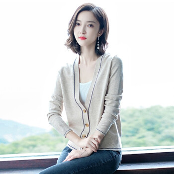 闺园针织衫女短款秋冬季新款V领针织开衫毛衣女外套薄款休闲打底上衣女 灰燕麦 请拍正确尺码 |