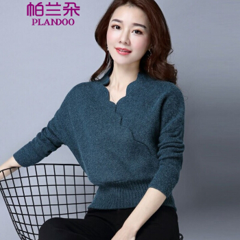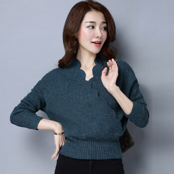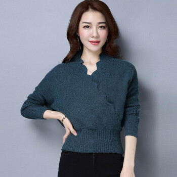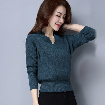 帕兰朵 针织衫针织衫女秋季新款时尚交叉V领毛衣女宽松收腰显瘦百搭打底上衣 孔雀蓝 请拍正确尺码 |