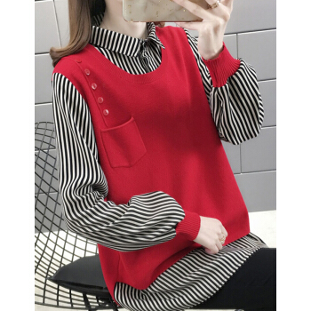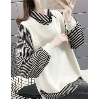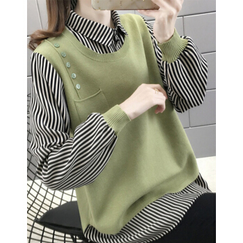 婪澈针织衫女秋季新款女装薄款毛衣女宽松外穿上衣秋冬拼接针织外套 绿色 L |