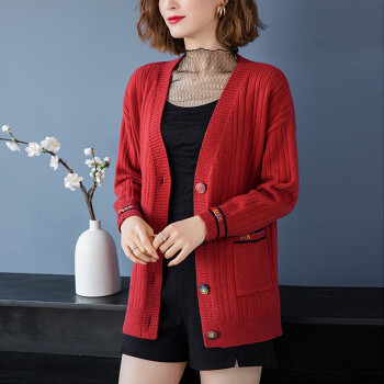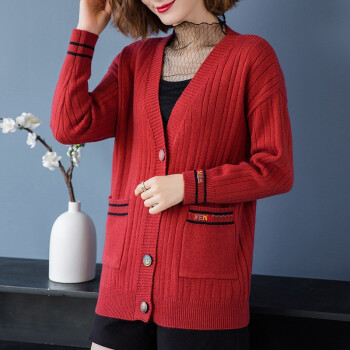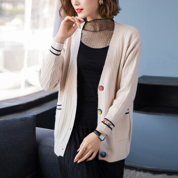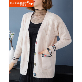 红蜻蜓 春秋装针织开衫洋气新款女装韩版宽松短款上衣潮毛衣外套长袖时尚 WL690-3 米白 均码 |