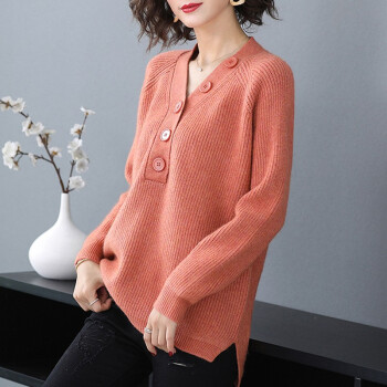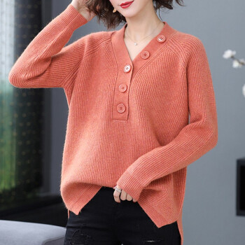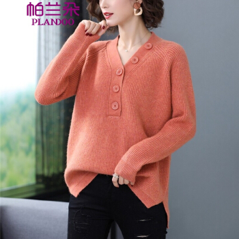 帕兰朵 针织衫女秋冬新款大码毛衣女宽松套头洋气V领针织打底衫百搭上衣外套 橘色 请拍正确尺码 |