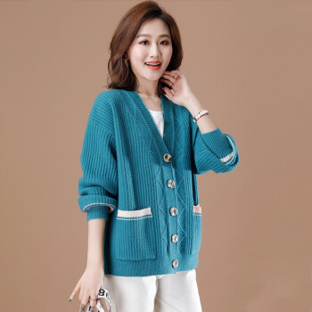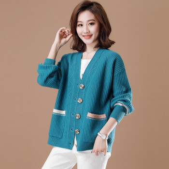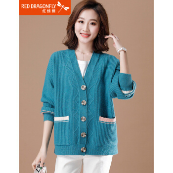 红蜻蜓 针织开衫女短款秋装新款韩版外搭显瘦毛衣外套洋气春秋百搭针织衫女 WL637 蓝色 均码 |