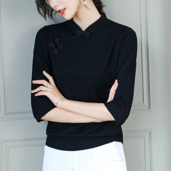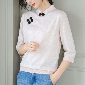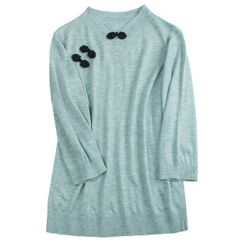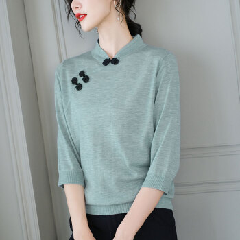 歌米拉 复古针织衫女套头春秋季七分袖上衣秋装新款薄款毛衣打底衫 湖绿色 M |