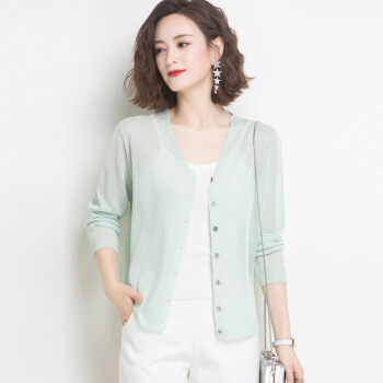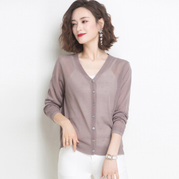 歌米拉 冰丝针织衫女开衫短款小外套夏季新款洋气薄防晒衫女士长袖外搭 驼色 M |