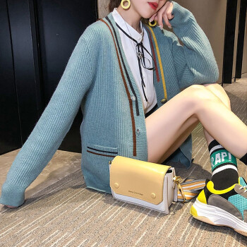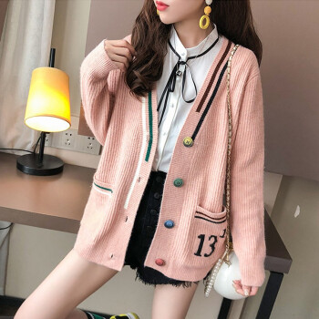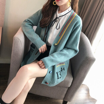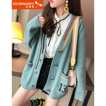 红蜻蜓 毛衣外套女春秋新款韩版宽松显瘦慵懒风外搭洋气针织衫开衫百搭休闲上衣潮 WL727 绿色 均码 |