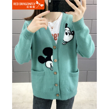 红蜻蜓 针织衫女新款秋冬季甜美气质韩版女装开衫V字领宽松型针织毛衣女外套 WL172 绿色 均码 |