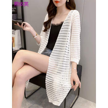 熙依芙针织衫女镂空披肩外套女针织薄款夏装防晒外搭中长款上衣韩版冰丝开衫潮 白色 均码 |