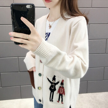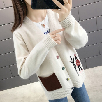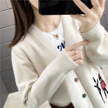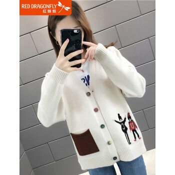 红蜻蜓 慵懒风毛衣开衫女秋季新款时尚女装韩版针织外套女上衣潮百搭宽松针织衫 WL733 米白色 均码 |