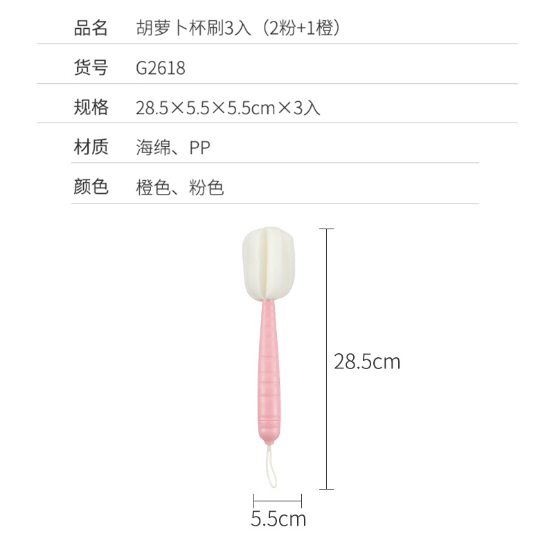胡萝卜杯刷3入(2粉+1橙)【海绵+PP/图片色】 |