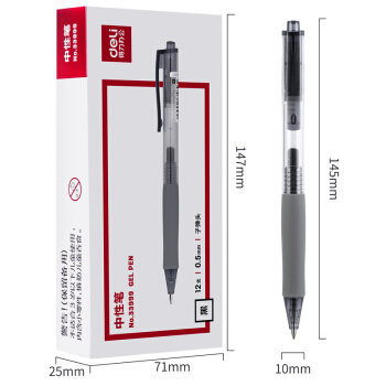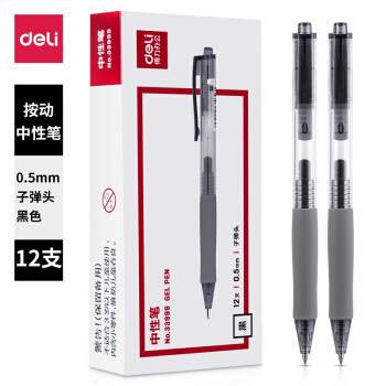 得力(deli)0.5mm按动中性笔水笔签字笔 办公用品 子弹头黑色12支/盒 |