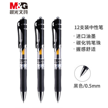 晨光(M&G)文具K35/0.5mm黑色中性笔 经典按动子弹头签字笔 办公水笔 12支/盒 |