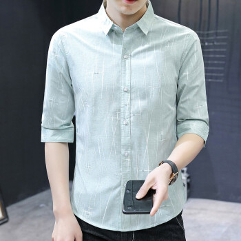 ED.HD衬衫男夏季新款短袖衬衫男士五分袖衬衣时尚休闲韩版男装潮流衣服 6028浅灰色 XL |