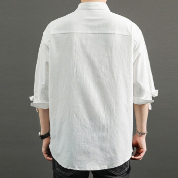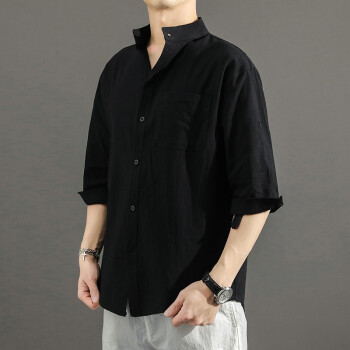 半双 短袖衬衫男夏季新款宽松大码中国风亚麻衬衣薄款男士休闲七分袖棉麻寸衫yym 黑色 M (建议100-115斤) |