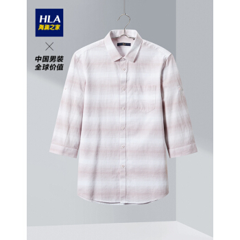 HLA海澜之家条纹中袖休闲衬衫夏季新品舒适棉麻衬衫男HNEBD2Q002A 粉红条纹02 175/92A |