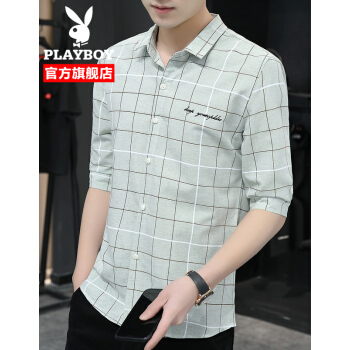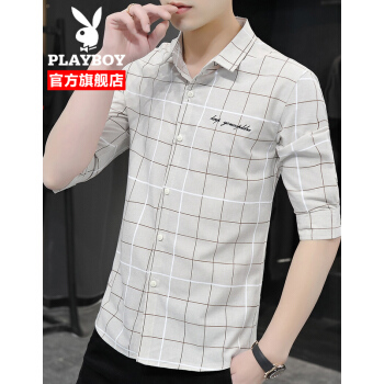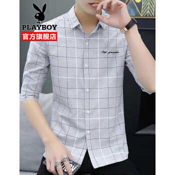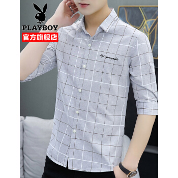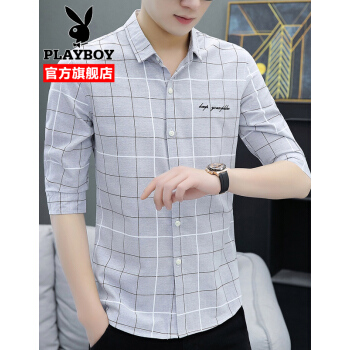 衬衫男士夏季新款韩版修身潮牌翻领中袖衬衣外套夏装青年男装寸衫上衣 灰色 XL |