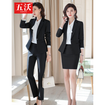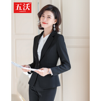 五沃 职业装女装套装小西装女时尚OL气质修身商务正装上班族工作服 黑色西装+西裤 L |