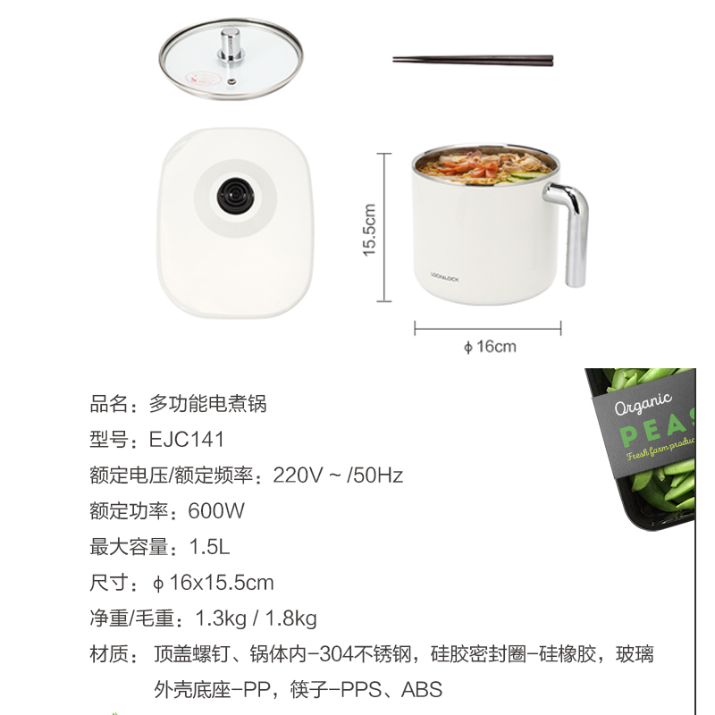 乐扣乐扣迷你多功能寝室家用不锈钢电煮锅【304不锈钢/白色】 |