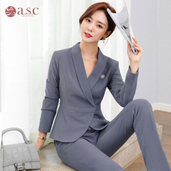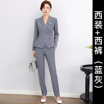 艾尚臣小西装女秋季新款高端时尚职业装商务气质总裁西装正装西服面试工作服 灰蓝色西装+西裤 S |