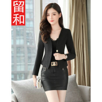 留和 小西装女春秋季一粒扣短外套纯色修身职业女装上衣百搭外套工装X1196 黑色 L |