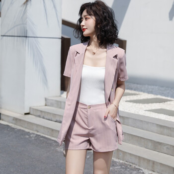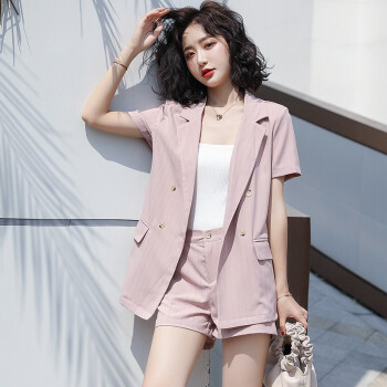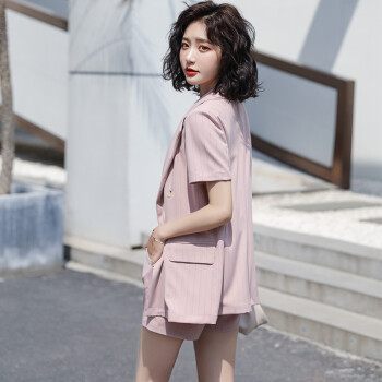 锦绣安娜 小西装女夏季新款韩版气质时尚休闲短裤套装洋气西服两件套K2038 粉色 M |