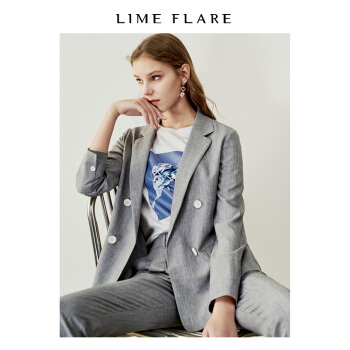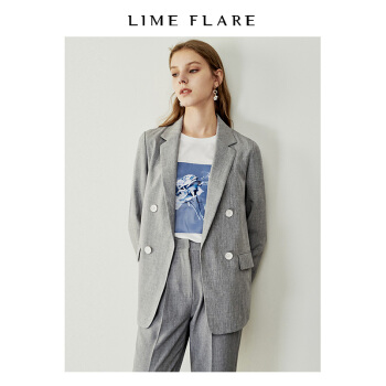 莱茵福莱尔秋季新款欧洲站西装外套女士宽松高级垂感韩版职业西服 中灰色 155/76A/S |