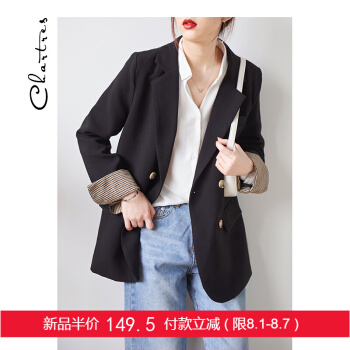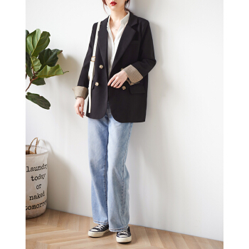 【新品5折 149.5元】黑色小西装女 秋韩版小外套小个子网红短款上衣休闲西服外套X445 黑色 M |