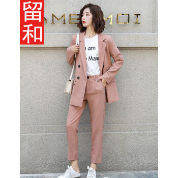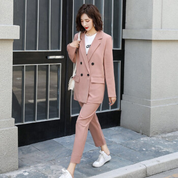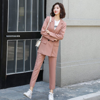 留和 小西装外套女秋季新品休闲职业装女装套装时尚款修身小个子工装外套X9911 粉色 L |