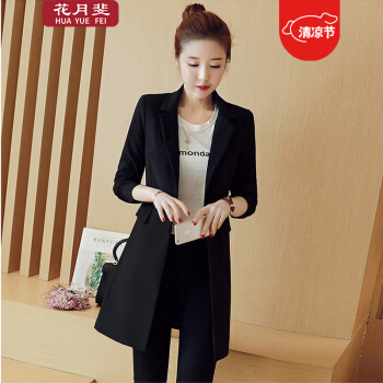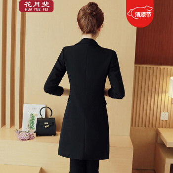 花月斐小西装女中长款秋季新款西服时尚简约OL通勤休闲长袖修身中长款西装小外套1701 黑色 L |