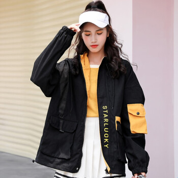 随影衣飘 短外套女秋季新品女装大码韩版百搭宽松bf棒球服工装学生外套女 黑色 M |