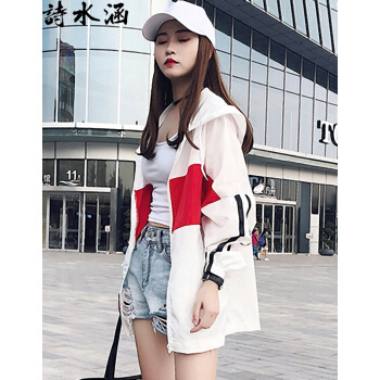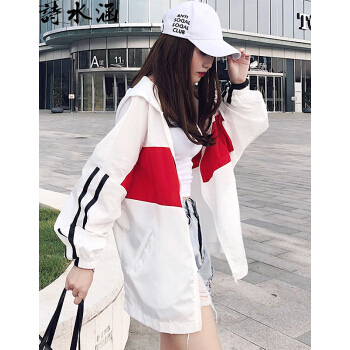 诗水涵 防晒衣女夏季新款韩版中长款防晒服女宽松学生百搭薄款外套女装时尚户外开衫棒球服防晒衫女 红色 XSS |