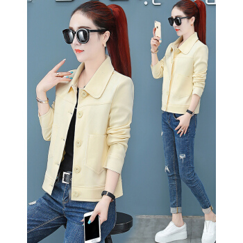 婪澈外套女春秋新款女装潮韩版宽松秋短款夹克工装女士小香风女上衣 粉桔 L |