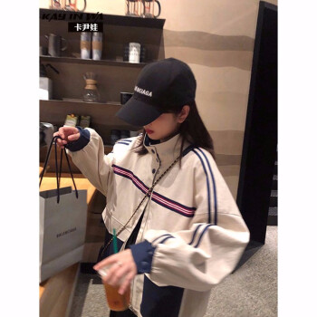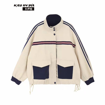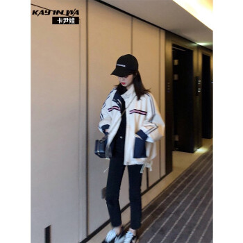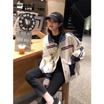 卡尹娃 短外套女春秋新款韩版学生女装复古港味工装休闲百搭宽松bf情侣棒球服 图片色 S |