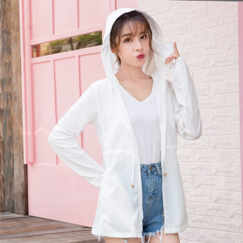 南极人防晒衣女中长款皮肤衣夏季新款防晒服薄款修身时尚bf短外套女装 白色 L |