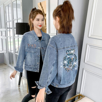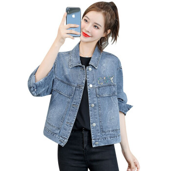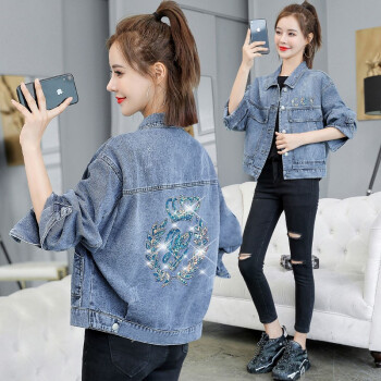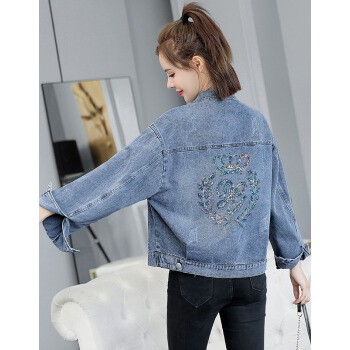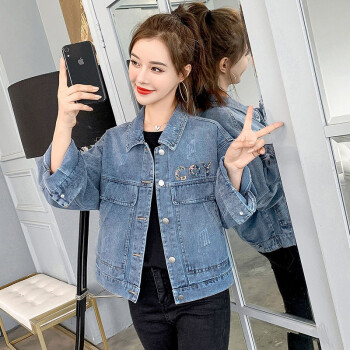 淑蔓婷牛仔外套女春秋短款新款港味学生复古韩版宽松亮片牛仔衣夹克 8770图片色 M |