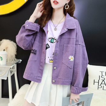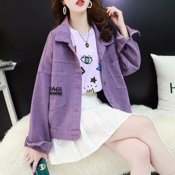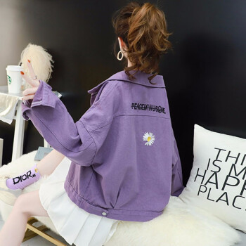 歌卡兰短外套女早秋新品女装小雏菊女装牛仔外套女宽松韩版洋气短款开衫网红紫色上衣风衣女2305 紫色 L |